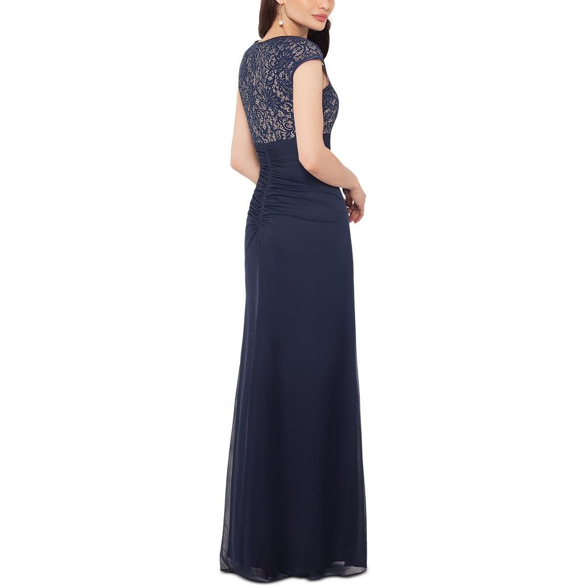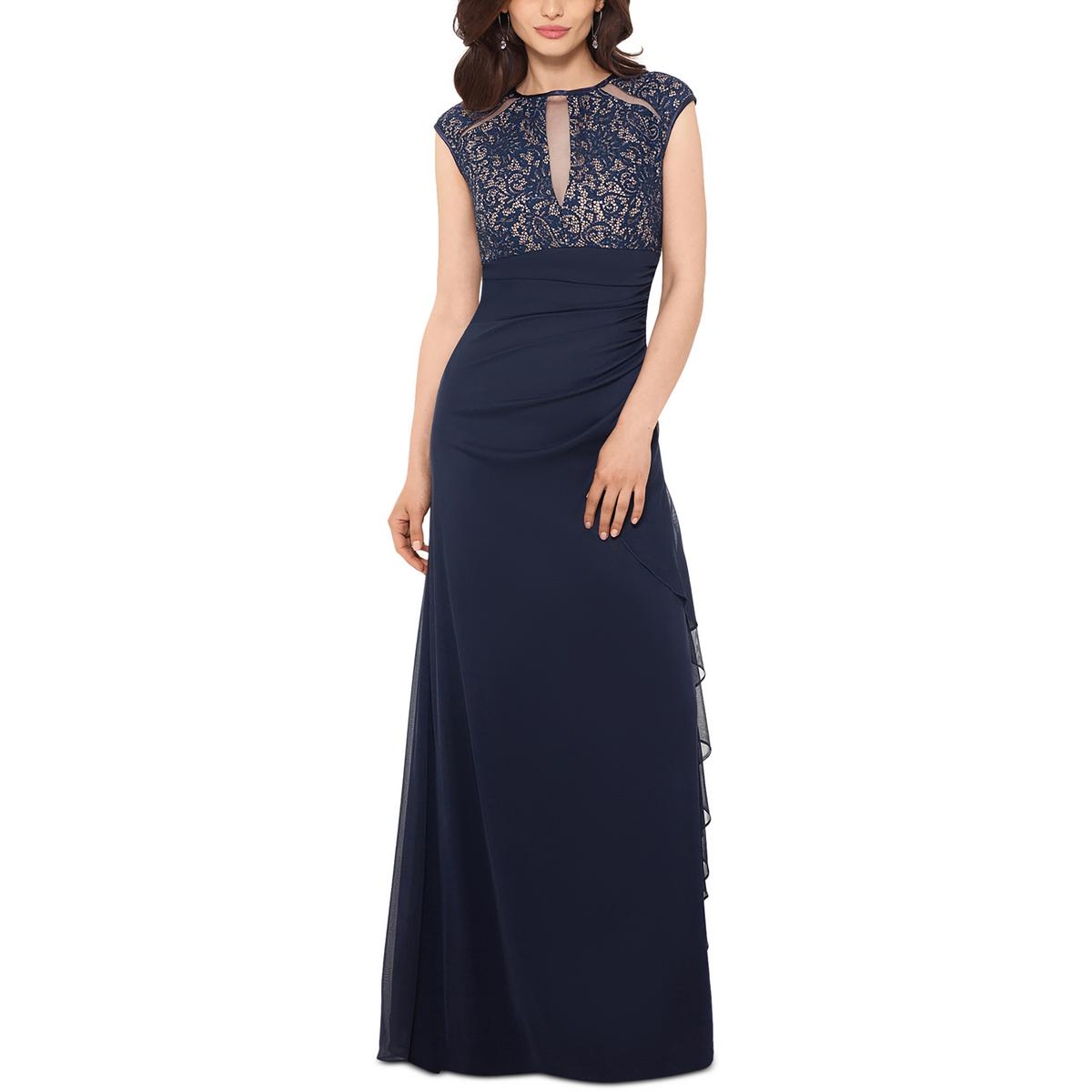 Betsy & Adam Womens Ruffled Maxi Evening Dress