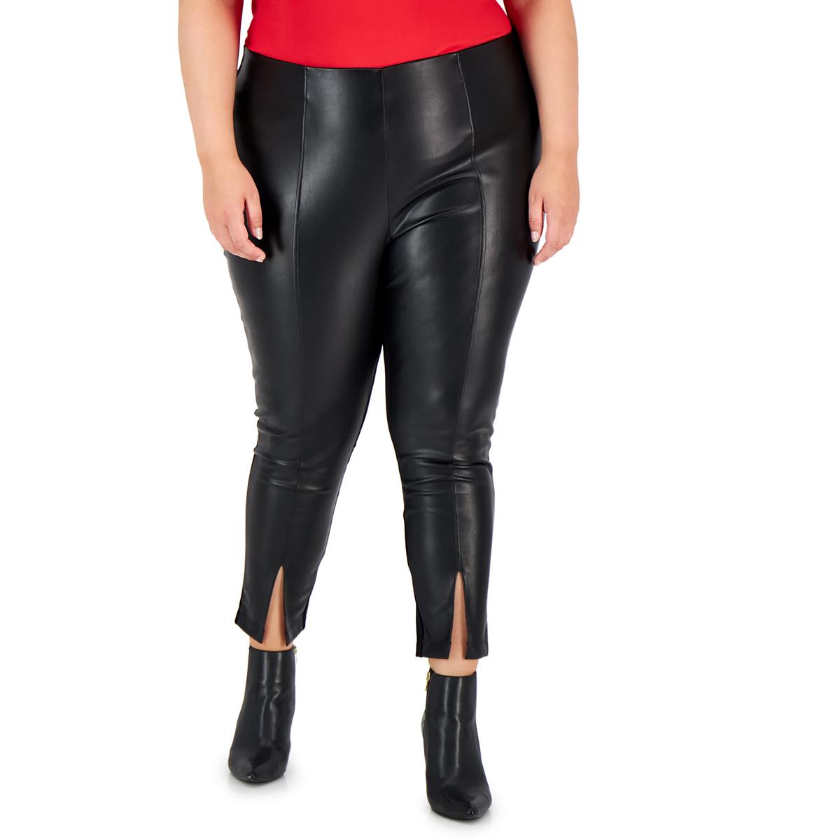 Calvin Klein Womens Plus Faux leather Slit Cuffs Ankle Pants