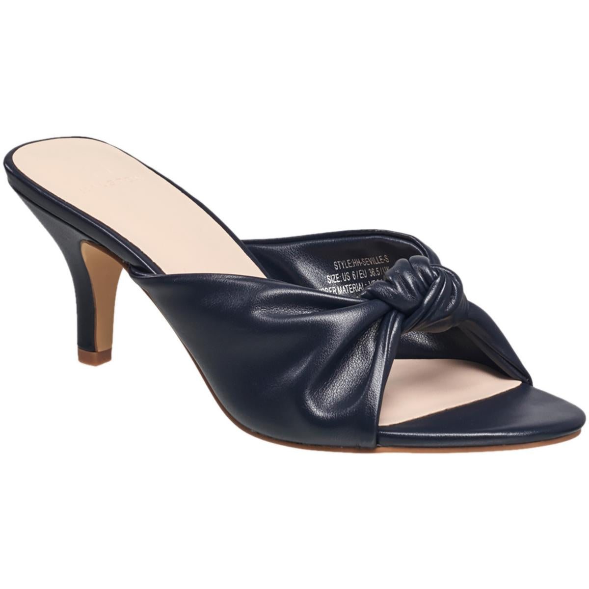 Elevate your day time look with the Seville heeled sandal by H Halston. Made of smooth vegan leather uppers. Slip on design for easy on the go wear. Lightly padded footbeds for comfort. Man-made outsole with kitten heel measuring 1.5 in height